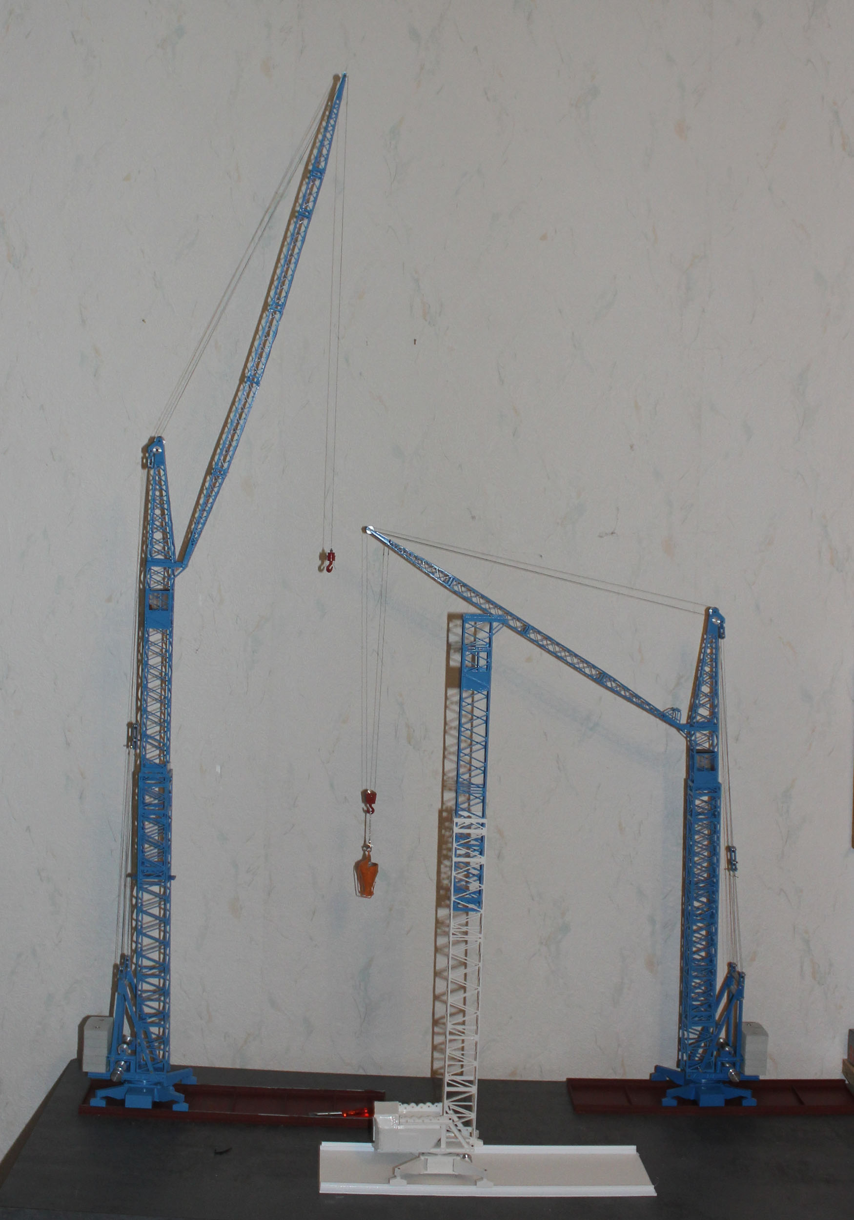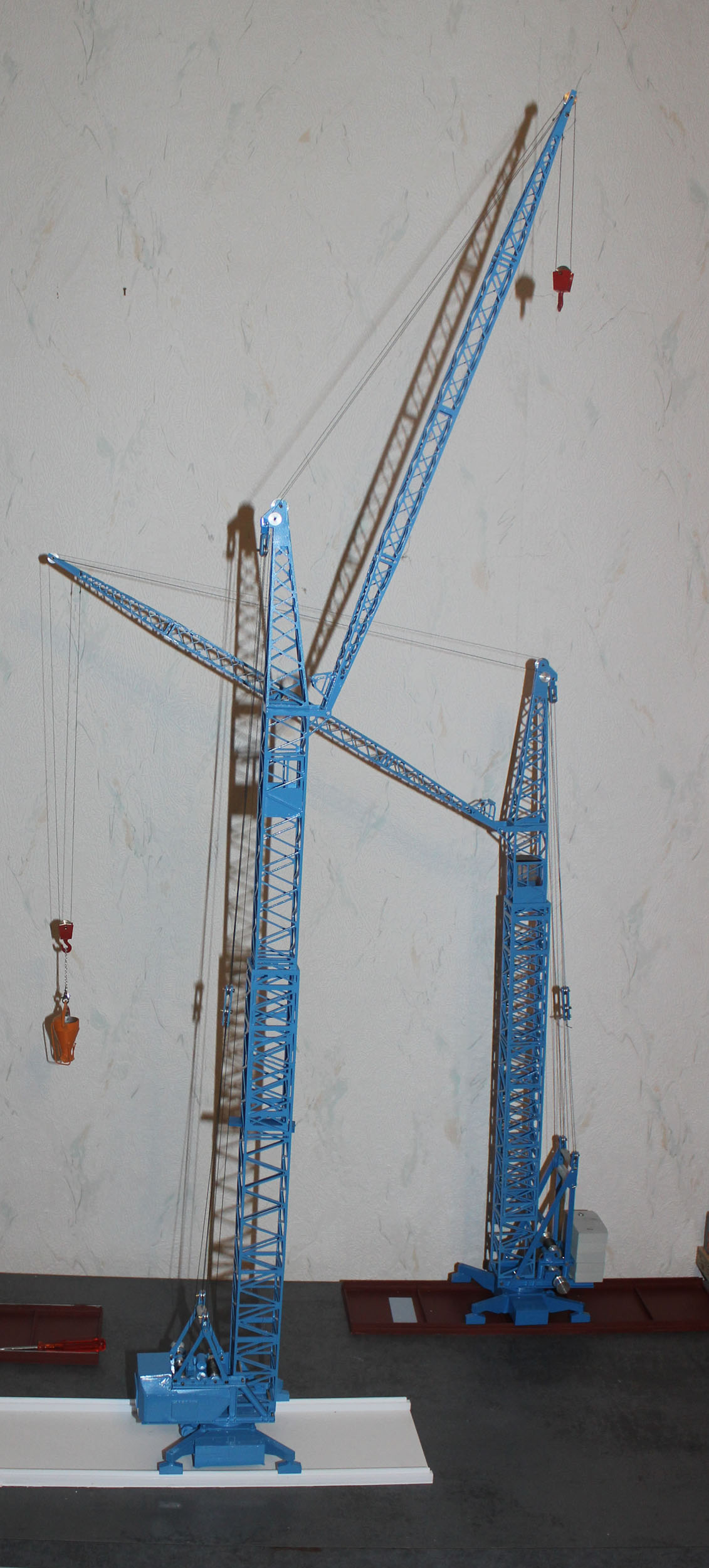 Wie ich während der Vorbereitungen zum Bau des Hilgers 45/58 feststellen konnte, gab es von diesem interessanten Hochbaukran 2 Versionen, eine mit Betonballast und einen Vorgänger mit Kiesballastkasten. Was liegt also näher, nachdem der Kran in 2 Ausführungen auch noch mit einem maximal 26 m langen Ausleger und einmal gescherter Hakenflasche für bis zu 15 to. Hubkraft gab und einem bis 36 m langen Ausleger und einsträngigem Haken, zu überlegen, auch diese Variante zu bauen.