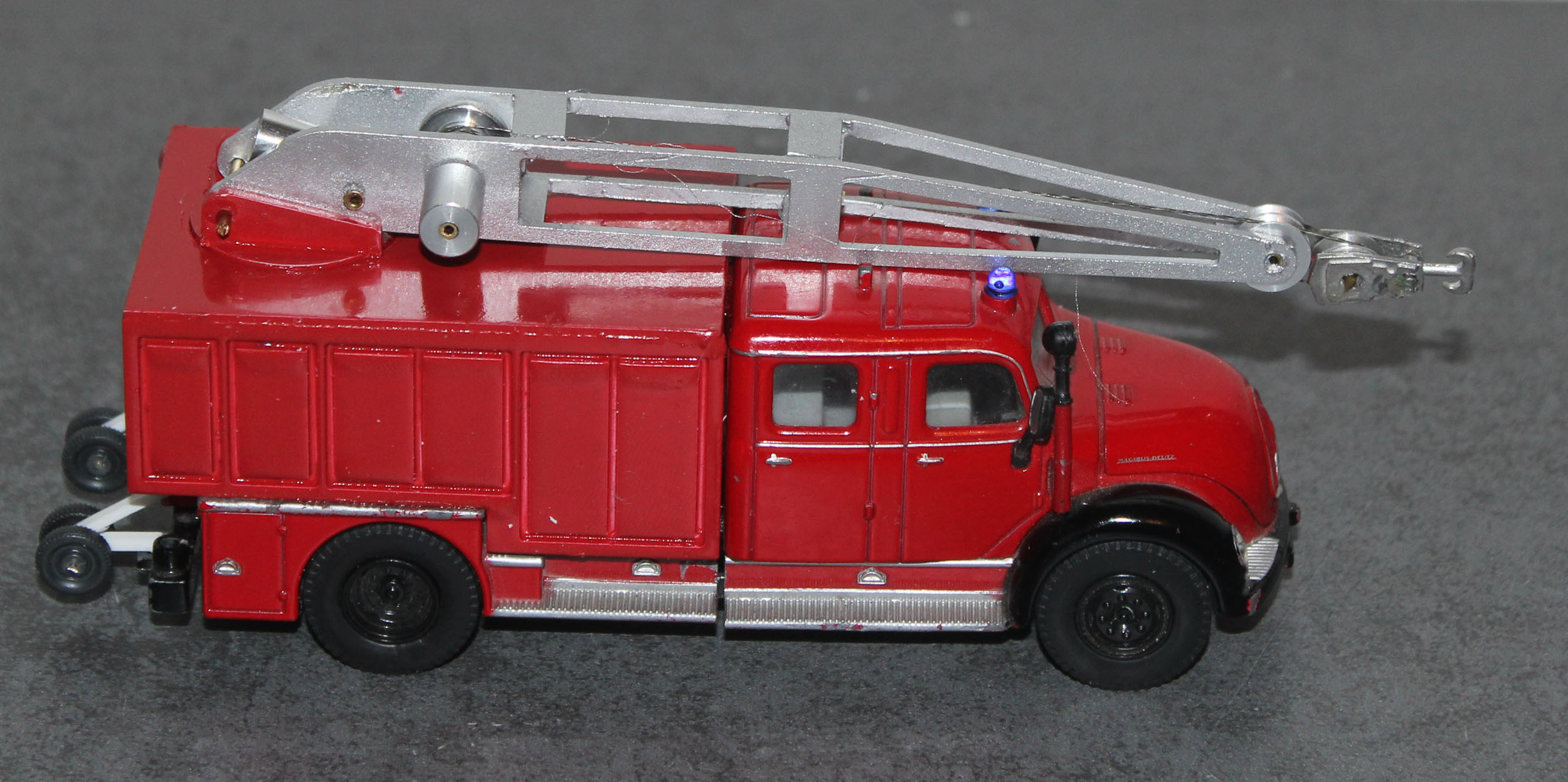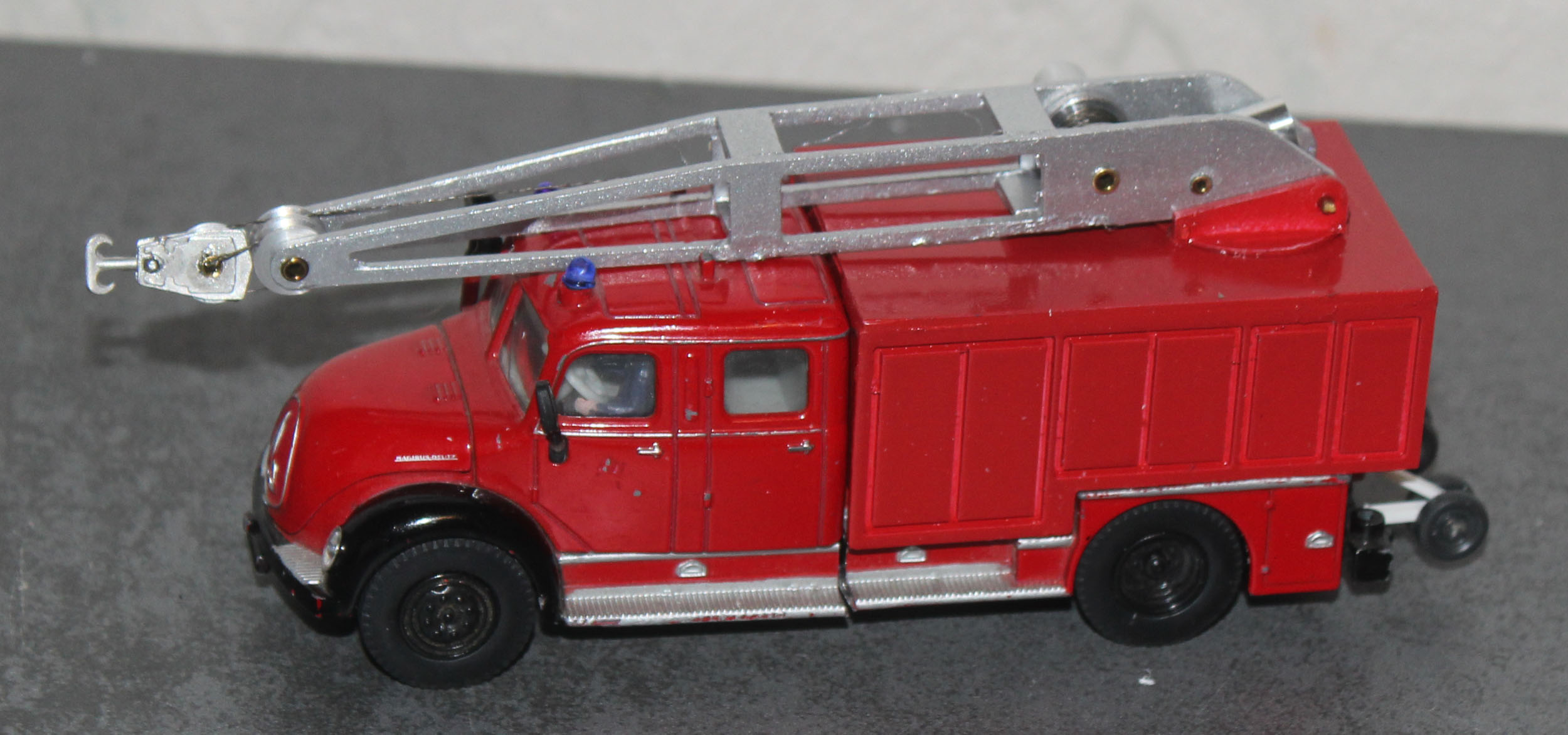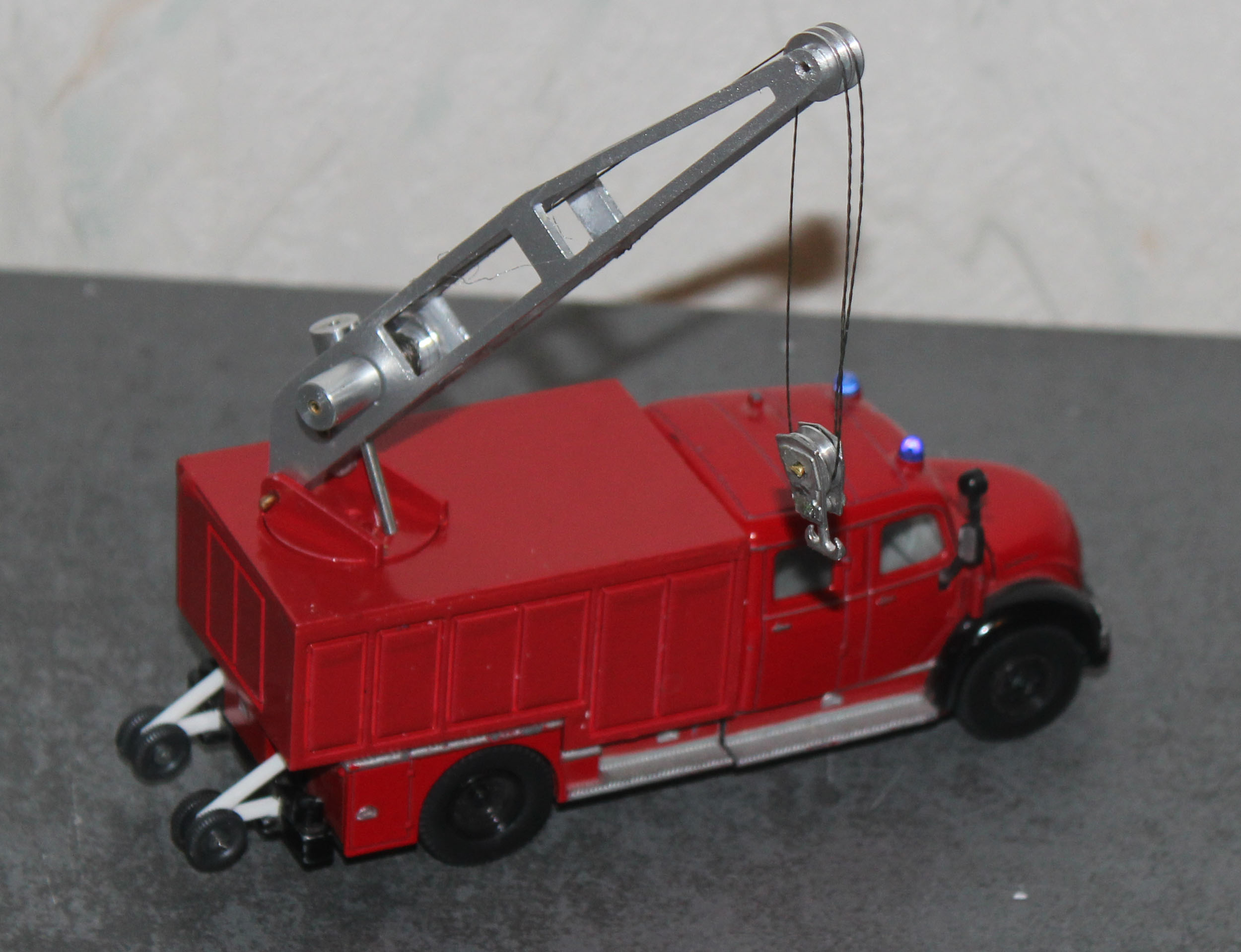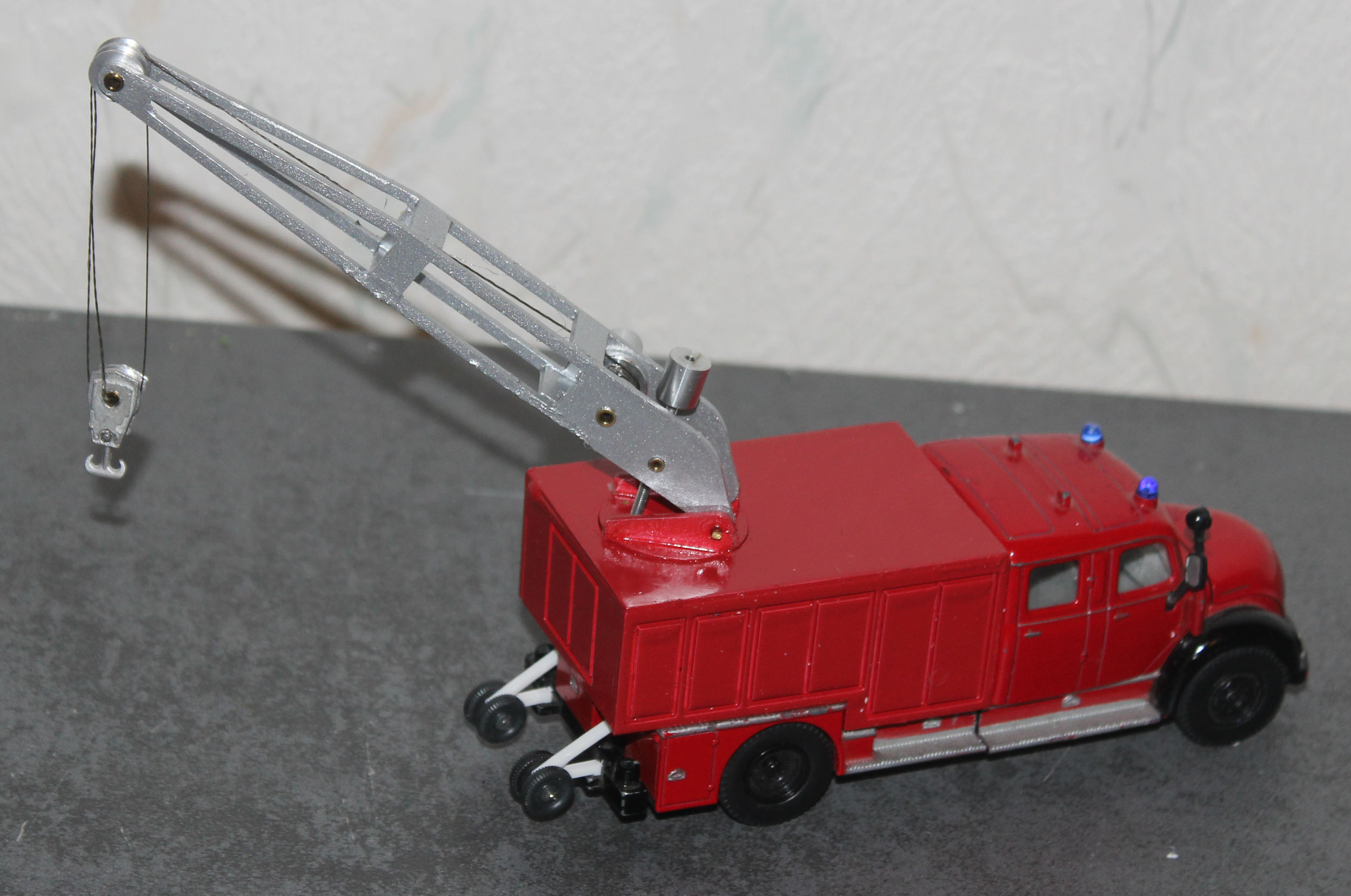 Und noch eine Feuerwehr auf Basis des Siku Leiterwagens ist mein Rüstwagen Kran. Der Aufbau ist ein kompletter Eigenbau und hat Magirus Rüstwagen zum Vorbild und entstand in Anlehnung an diese.