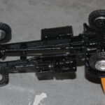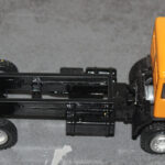 Doch betrachten wir zunächst mal die Fahrgestelle von unten. Dabei fällt auf, dass neben dem Tank und den Luftkesseln wesentliche Details fehlen. So der Batteriekasten und der Auspuff und die Kardanwelle. Diese Teile lassen sich leicht selbst anfertigen und anbauen. Betrachtet man die Fahrgestelle weiter, fällt auf, dass sie an der Hinterachse Einzelbereifung tragen. Soll das evtl. auf einen Allradtyp hinweisen? Man könnte so denken und eines der beiden Fahrzeuge entsprechend ausrüsten. Was dann aber auch zur Andeutung eines zweiten Getriebes am Modell führen sollte und einer Kardanwelle zur Vorderachse…