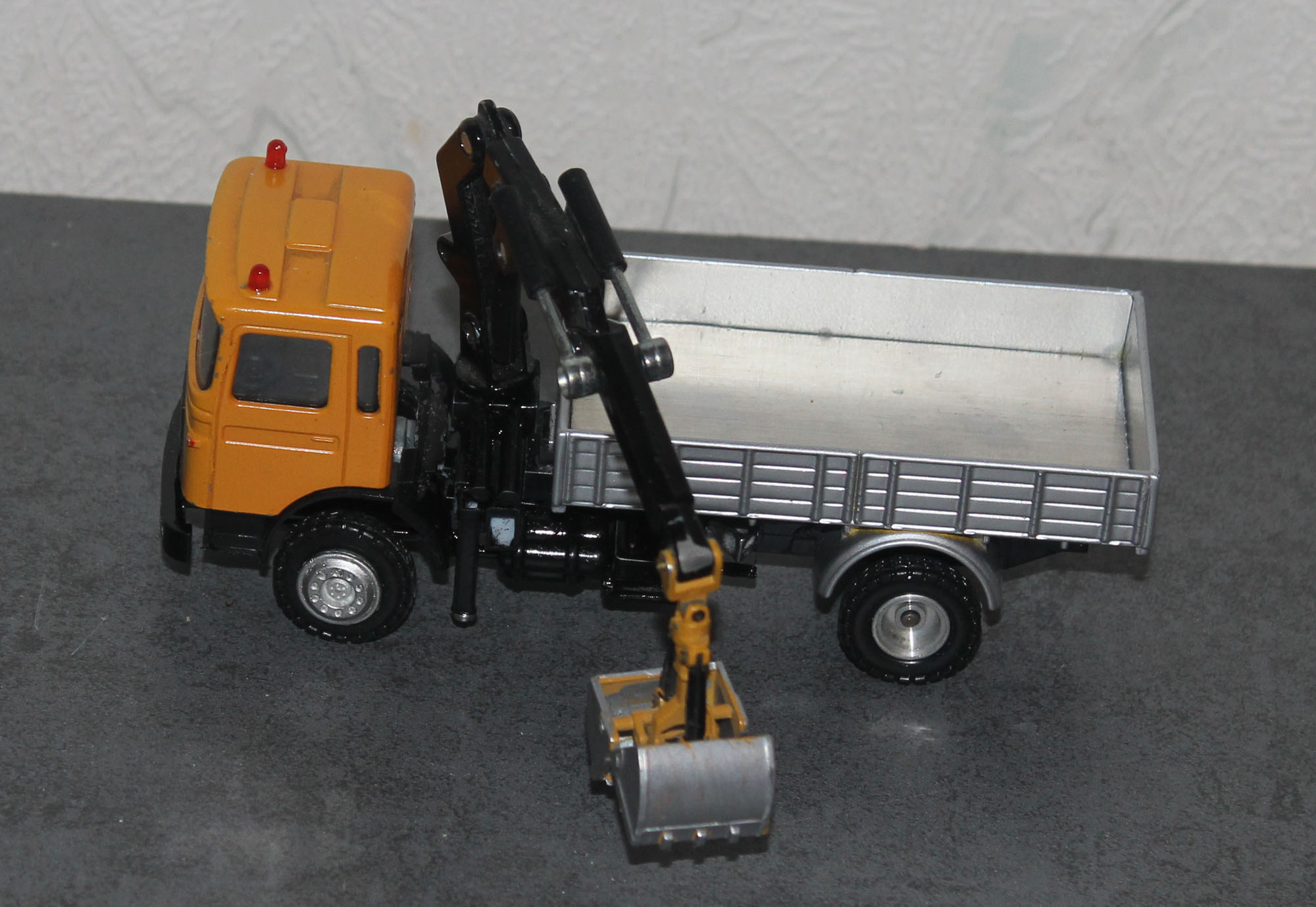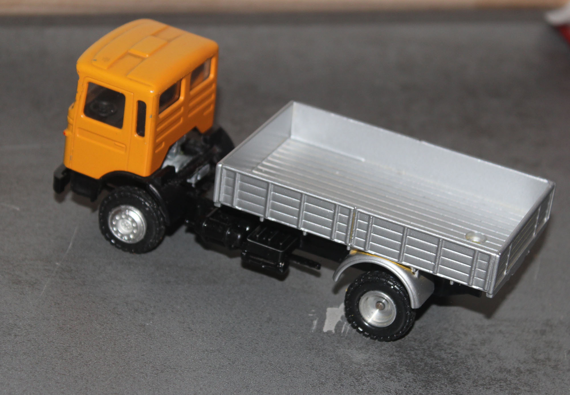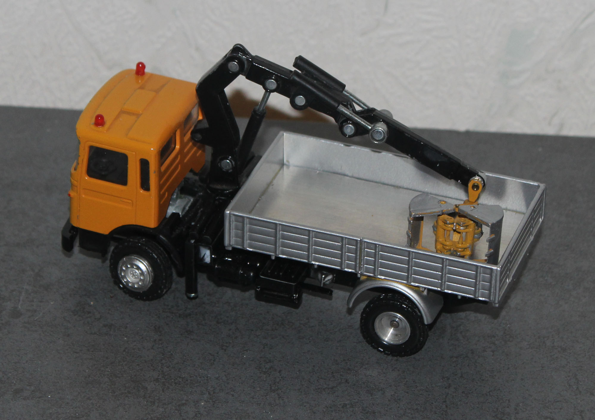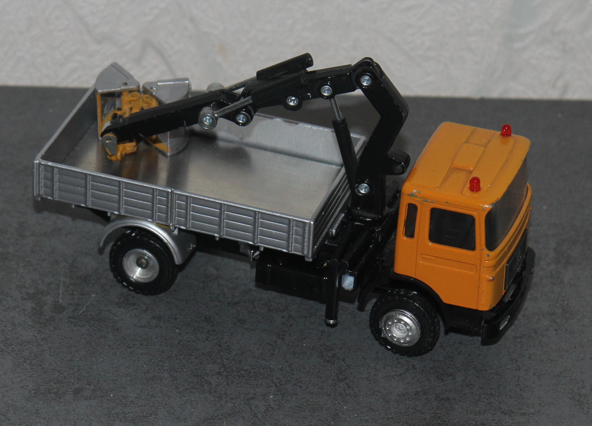 Mein Freund Thomas schickte mir zwei LKW von Gescha/Conrad mit der ursprünglichen Katalognummer AK 5007. Es war das erste Modell mit einem LKW Ladekran. Beiden Modellen gemein ist das Fehlen dieses Ladekrans und einem der beiden Fahrzeuge fehlt auch das Führerhaus.