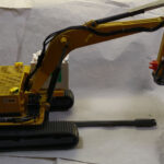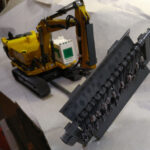 Mein freund Thomas hat sich mit einigen Modellen einem Thema gewidmet, das vor dem Hintergrund zur Zeit stattfindender Kriege eine ganz neue Brisanz und Aktualität hat: Minenräumung von Landminen. Fotos die er im Internet fand, haben ihn dazu bewogen einen Bagger gemäß den Vorbildfotos so umzubauen, dass man damit Landminen räumen kann. Basis ist ein Caterpillar Bagger.  Zusatzaggregat, Räumgerät und Kabine entstanden dabei auch mit Teilen von LEGO.