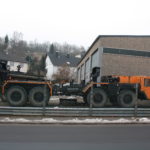 Dazu gehören sicher auch die Transporter mit denen die Rohre transportiert und Verladen werden. Wie schon im ersten Beitrag gezeigt, gab und gibt es entsprechende 4-achsige Fahrzeuge. Die Firma Rompf Rohrtransporte hat solche Fahrzeuge. Ob sie von einem Spezialfahrzeugbau oder in der eigenen Werkstatt entstanden kann ich nicht sagen. Aber ich konnte zumindest zwei solche 4-Achser mit dem IVECO Fahrerhaus der modernen Eckhauber-Niederflur-Feuerwehr fotografieren, die ich nicht vorenthalten will.