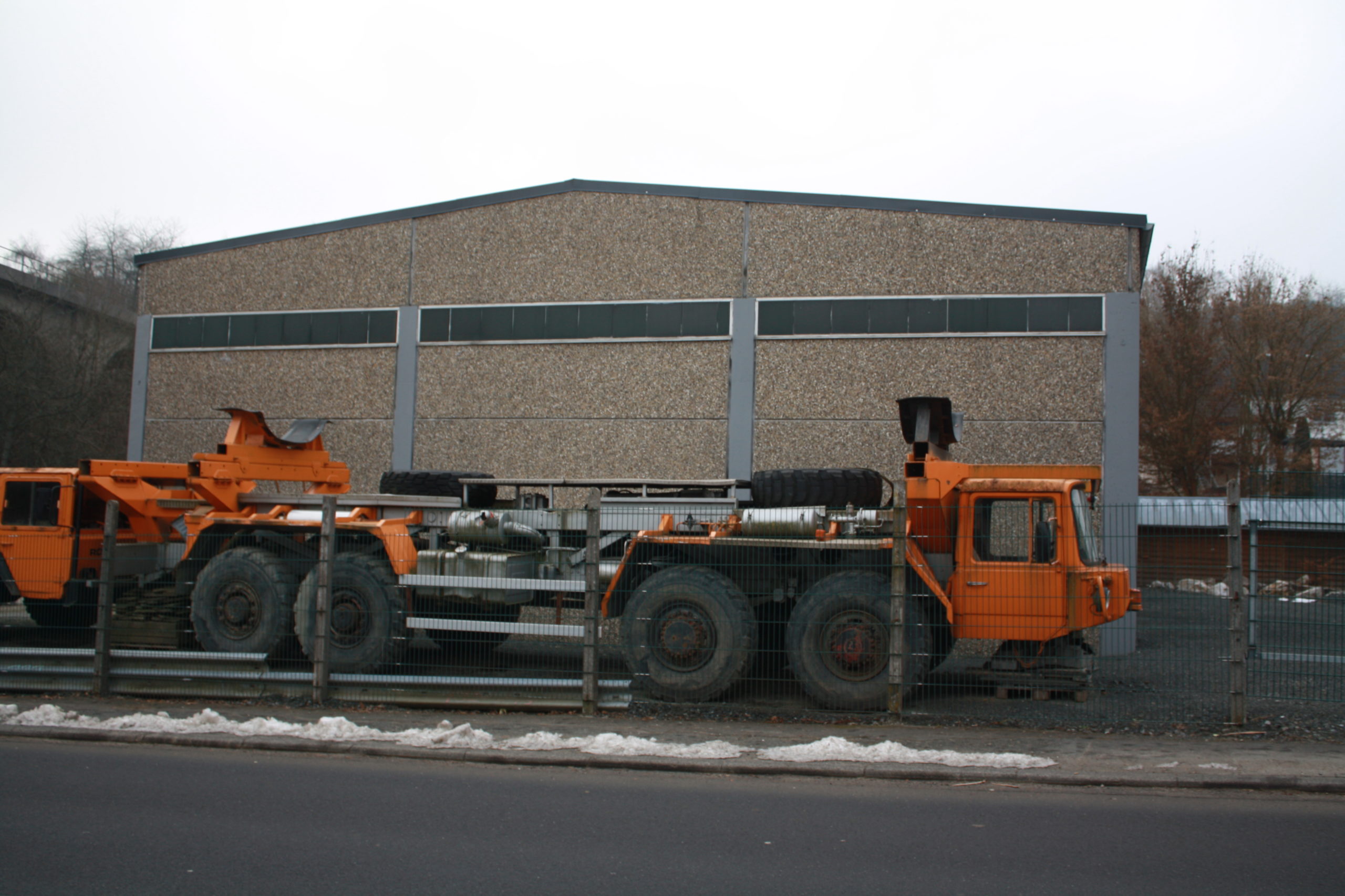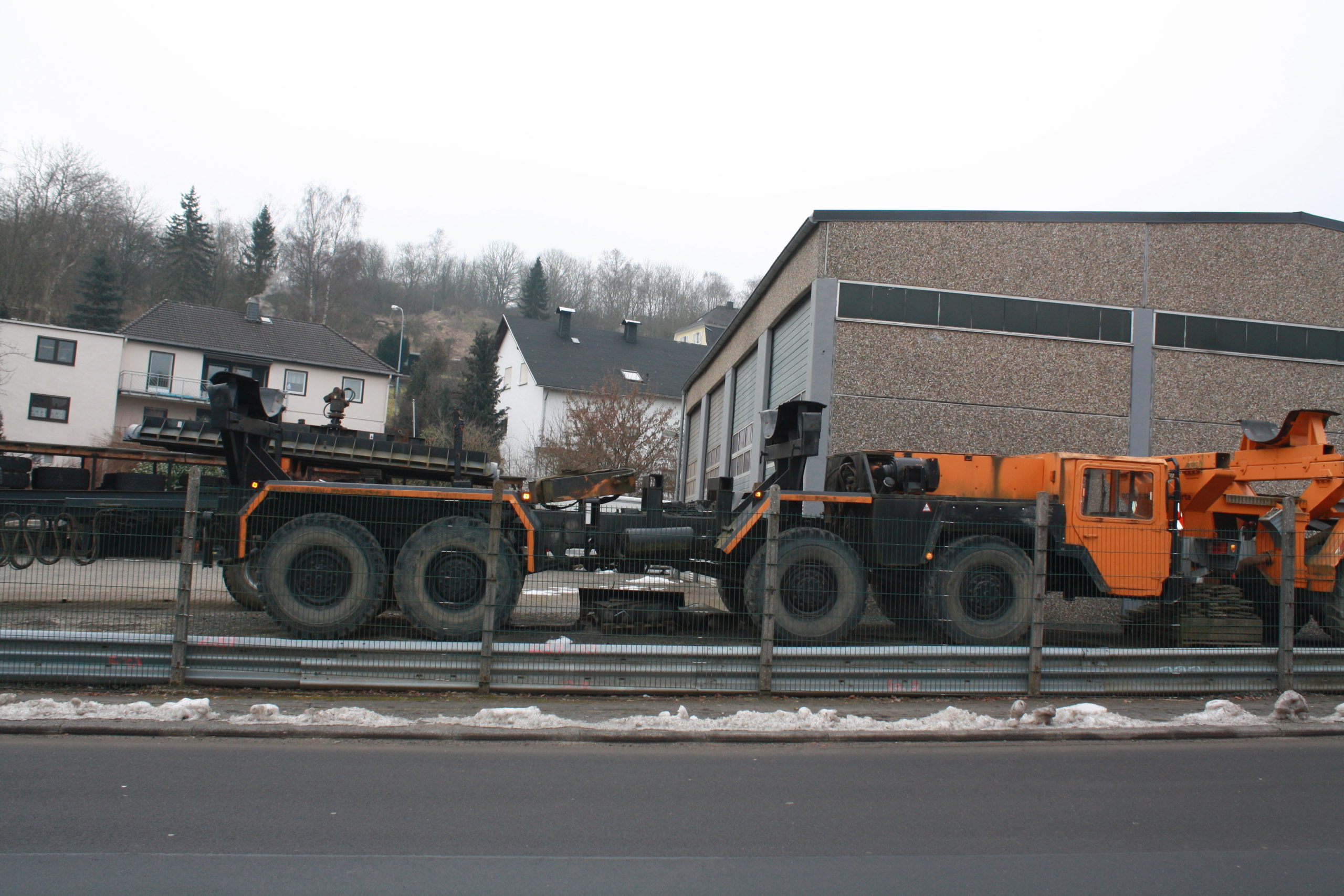 Dazu gehören sicher auch die Transporter mit denen die Rohre transportiert und Verladen werden. Wie schon im ersten Beitrag gezeigt, gab und gibt es entsprechende 4-achsige Fahrzeuge. Die Firma Rompf Rohrtransporte hat solche Fahrzeuge. Ob sie von einem Spezialfahrzeugbau oder in der eigenen Werkstatt entstanden kann ich nicht sagen. Aber ich konnte zumindest zwei solche 4-Achser mit dem IVECO Fahrerhaus der modernen Eckhauber-Niederflur-Feuerwehr fotografieren, die ich nicht vorenthalten will.