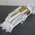 Was am Rohbau des Fahrgestells noch fehlt, sind die Aufstiege zur Krankabine, einige Rahmenanbauten und die Geländer und Stützen. Erst wenn das gemacht ist, geht es an den Oberwagen. Auch er wird eine entsprechende Ballastierung mit Messing bekommen.