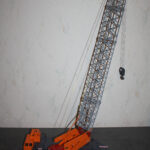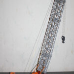 Was jetzt noch fehlt, sind zwei zwischen Stücke. Ja ich weiß, die meisten denken Krane müssen hoch, sehr hoch sein. Tatsache aber ist, dass die meisten Einsätze mit relativ kurzen Auslegern bewältigt werden. Außerdem ist die Wirkung eines so schweren Gerätes eine andere, wenn der Ausleger nicht so lang ist. Ein 12 m und ein 6 m Auslegerstück werden dem Kran die entsprechende Hubhöhe von knapp 60 cm geben, was einer Höhe von ca. 30 m beim Original entspricht. Und das ist ja nicht unbedigt nichts. Beim Studieren der Fotos im www war ich überrascht, was für Dimentionen der Auslager hat! Das ist schon enorm. Zum Modell: Die Steckverbinder sind im Moment nur provisorisch. Das Modell wird fertig über andere Teile verfügen.