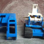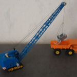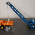 Als mich dieser Bagger erreichte war nicht nur der Ausleger gebrochen, die beiden Winden zur Betätigung des Greifers fehlten und waren durch eine durchdrehende Kurbel mit einzelner Windentrommel ausgestattet, die Schraube die die Karosserie zusammenhielt fehlte auch, die Gegengewichte und die Lampen. Der Haltebock der Umlenkrolle des Auslegers war gebrochen und die Aufnahme des Auslegers, auch die Raupenbänder am Fahrwerk fehlten.