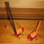 Unten sind drei von mir restaurierte Dinkytoys Modelle zu sehen. Der oben erwähnte Lagerplatzkran mit ausziehbarem Ausleger und zwei Autokräne. Ein Kran wurde mit dem originalen Ausleger restauriert. Da der zweite Kran einen stark beschädigten Auslager hatte, habe ich nach Unterlagen einen Ausleger gemäß dem Vorbild aus Polystyrol gefräst und an das Modell angebaut. Für beide Modelle habe ich außerdem noch anklemmbare Stützen gebaut. Damit ist das Modell dem Vorbild noch ein wenig näher gekommen. Haken und Schnurlufrollen stammen aus meiner Werkstatt und sind selbst angefertigt.