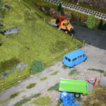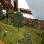Ist nur die Frage: Wie stellen wir nach der mühevollen und schweißtreibenen Pfahlsetzung, auf der Gebirgsweide, zum Schutze der Kühe auf der Alm, den mehr oder weniger dem Geländeverlauf folgenden Drahtzaun dar, der die Viecher im Zaum halten soll? Vor Jahr(zehnt)en habe ich schon als Jungndlicher in Mutters Nähkasten eingebrochen und habe ihr – nichts davon wisssend – den dort von Ihr gehüteten Gummifaden entwendet, um auf meiner H0 Anlage, an der auch mein Vater mitbaute, damit die Weiden von Pferden und Kühen und Schafen zu umgrenzen und ihnen somit die nötige Sicherheit durch Einfriedung zu geben.