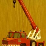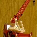 Gummifäden habe ich aber auch schon bei Fahrzeugmodellen benutzt, etwa in 1:87 beim Wiking V 70, oder dem Krupp Bagger, oder in 1:50 bei dem Richier Kranwagen von Solido, der keine Kurbel hat, um an den Haken etwas zu hängen. Das Gewicht der Last sorgt dann für eine mehr, oder weniger starke Längung des Hubseils in Form des Gummifadens. Und das sieht dann einfach nur gut aus…